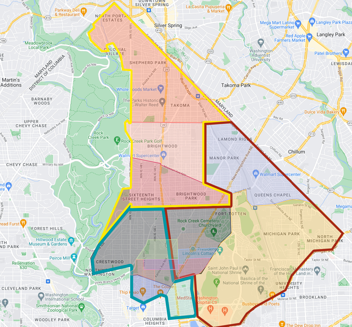 Different organizations in DC divide the city’s geography differently, which can be confusing for residents. Wards, Advisory Neighborhood Commissions (ANC), ANC Single Member Districts (SMDs), Metropolitan Police Department (MPD) Districts, MPD Sectors, MPD Police Service Areas (PSA), the list goes on…